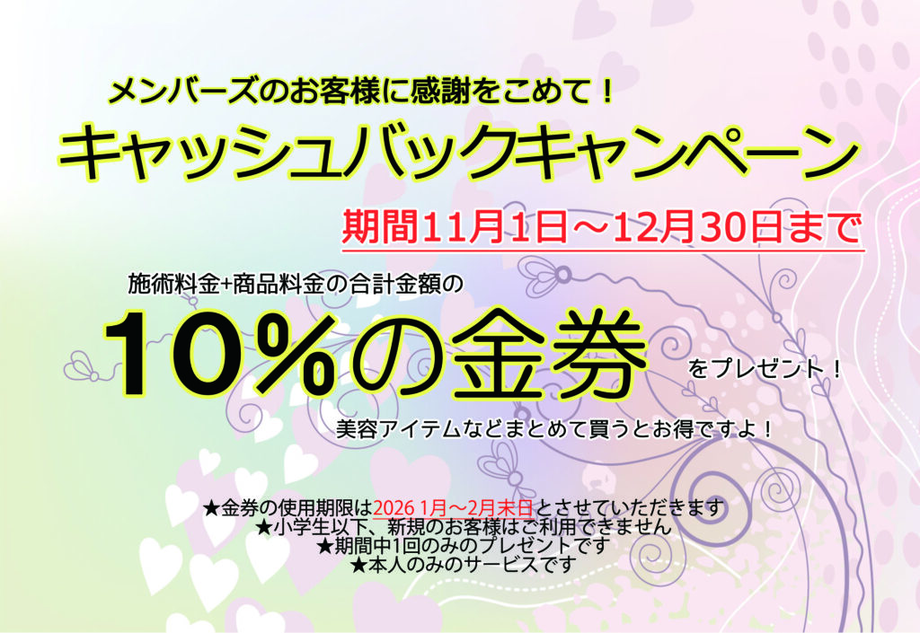 技術+商品の合計金額の10%分の金券をプレゼント!